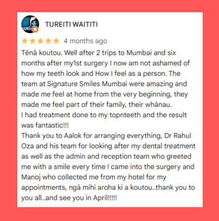 Mrs. Breeze Jessep flew from Australia with her husband Peter Jesep to especially get her dental treatment done at Signature Smiles Dental Clinic in Mumbai.