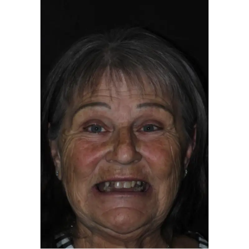 She was struggling with multiple missing and weakened teeth. This impacted both her oral function and her confidence.