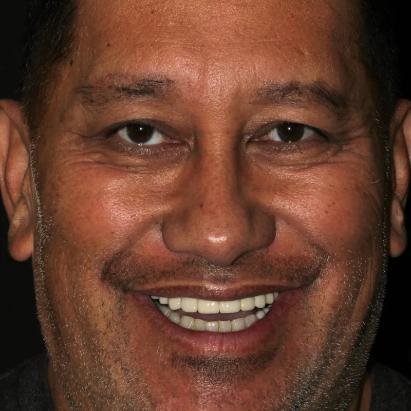 For the upper arch, the patient received an upper implant-supported bridge.